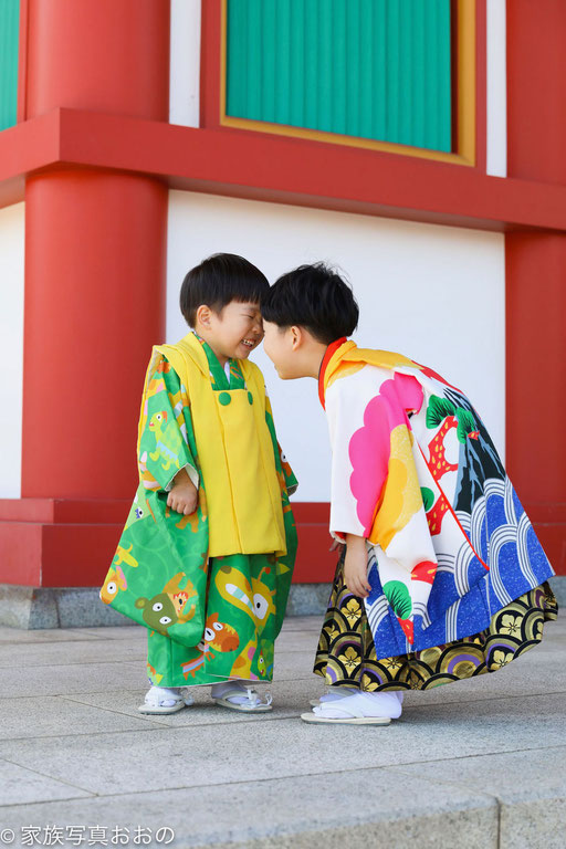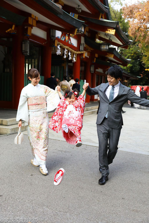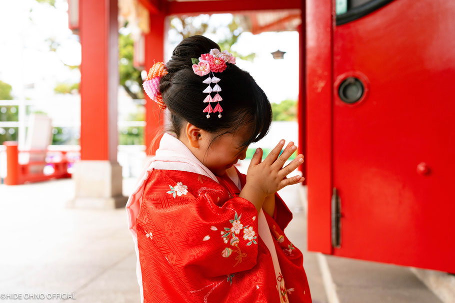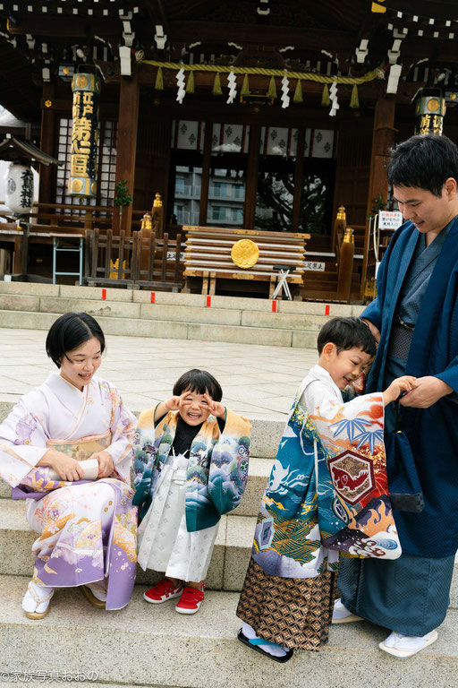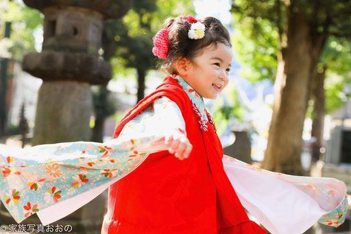 着付けが無事終わって、ほっとしていたら、どんどんこどもの機嫌が悪くなってきて、神社に到着する頃には機嫌が悪いということもございます。そういったこともございますので、移動中も楽しい雰囲気づくりをして頂けますと幸いです。ちなみに、神社までの移動中、撮影直前まではスニーカーで🆗です。お子様の機嫌に合わせて、スニーカーを履いた状態で撮影を進めて、良きタイミングで草履にチェンジして頂くこともよくあります(というか、ほとんど)。常に、全身ショットを撮影するということもございませんので、足元がスニーカーの方が、お子様の表情もいつもの自然な笑顔が出やすいです☺️